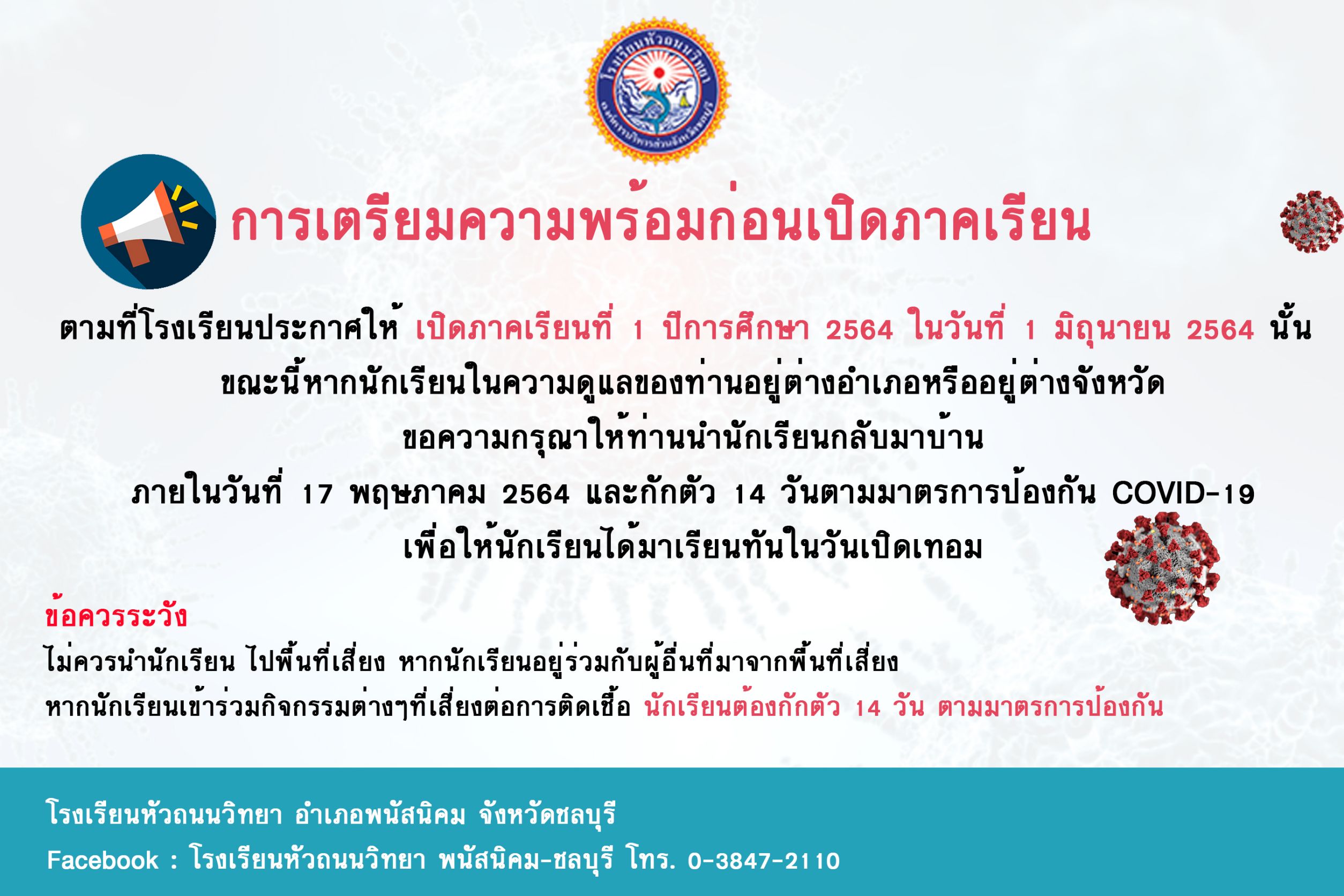 ประกาศ การเตรียมความพร้อมก่อนเปิดภาคเรียน