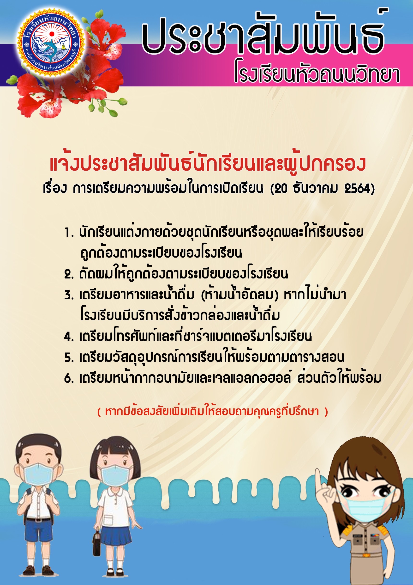 ประชาสัมพันธ์ เรื่องการเตรียมความพร้อมการเปิดภาคเรียน