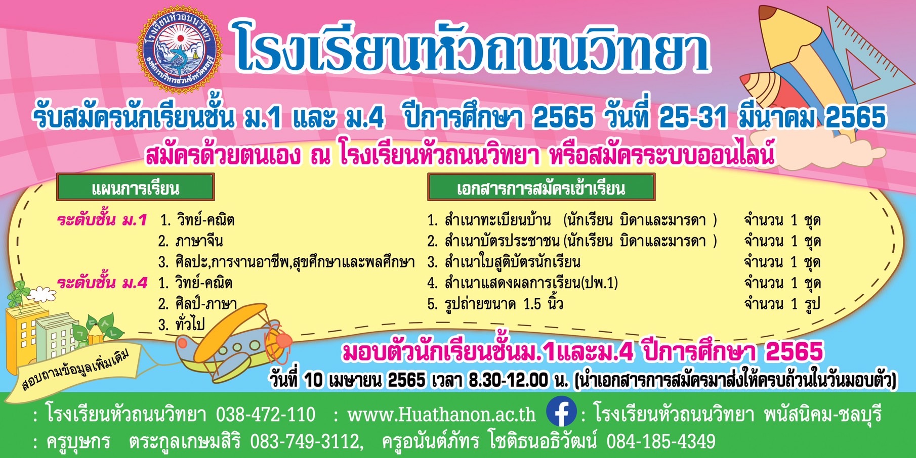 ทาง http://huathanon.ac.th/ และ Facebook : โรงเรียนหัวถนนวิทยา-พนัสนิคม