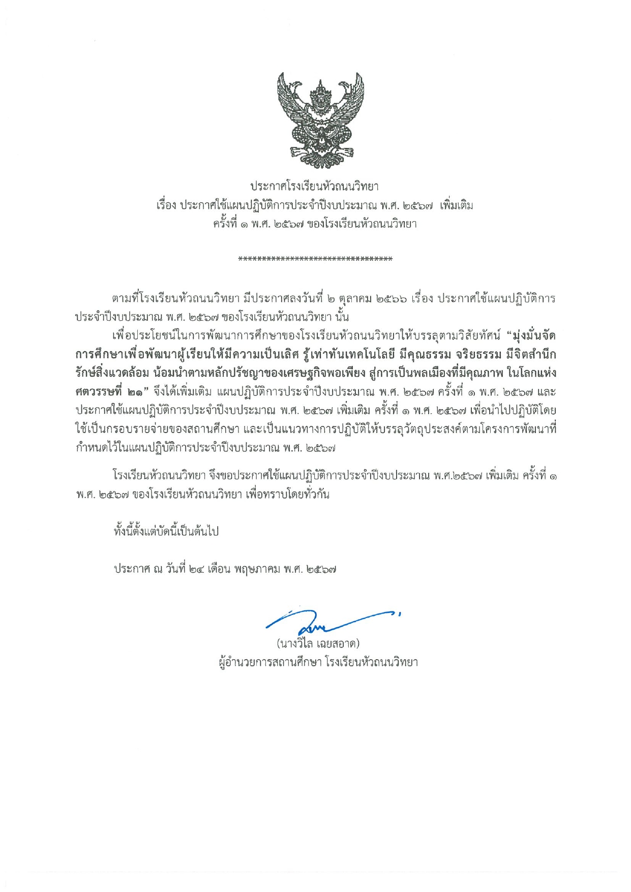 ประกาศใช้แผนปฏิบัติการประจำปีงบประมาณ พ.ศ.2567 เพิ่มเติม ครั้งที่ 1
