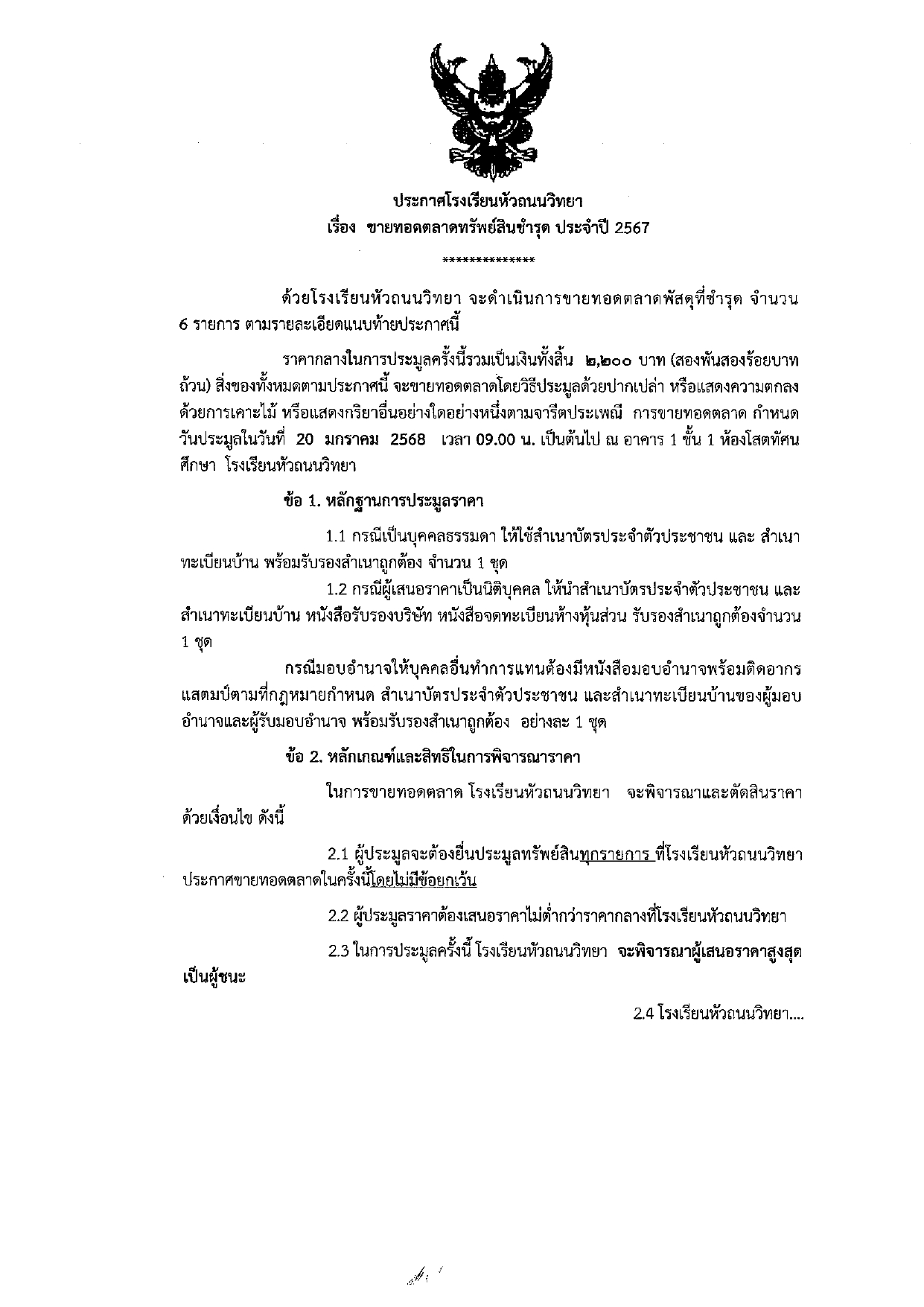 ขายทอดตลาดทรัพย์สินชำรุด ปี 2567